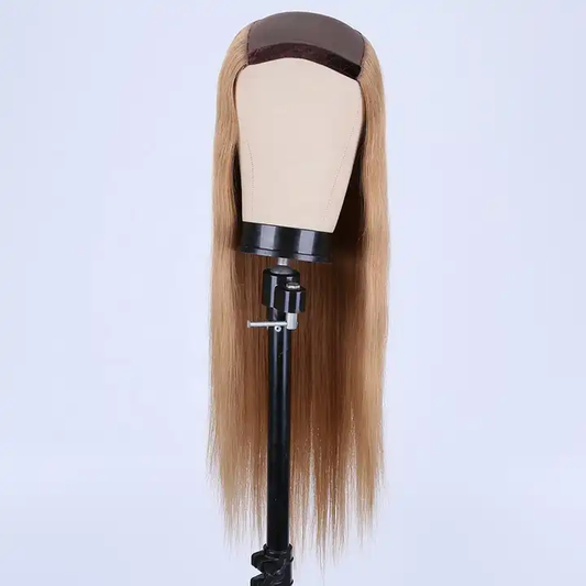 16 inch 150% density straight texture natural black color machine weft U-part Hat wig