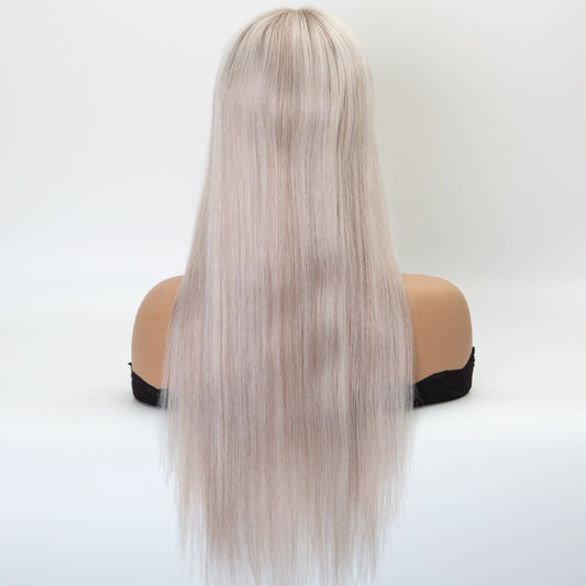 Rooted white blonde balayage color European virgin human hair single knots HD lace toppers for women