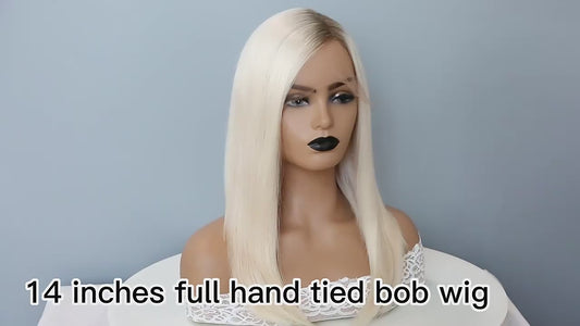 Dianne 14" Full Hand Tied Short Bob Wig Mono Top 12A Grade Quality cuticle Aligned 100% Virgin European Hair