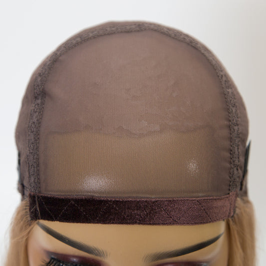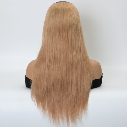 PR12 Brown blonde color 16 inch 150% density straight texture machine weft U-part Hat wig