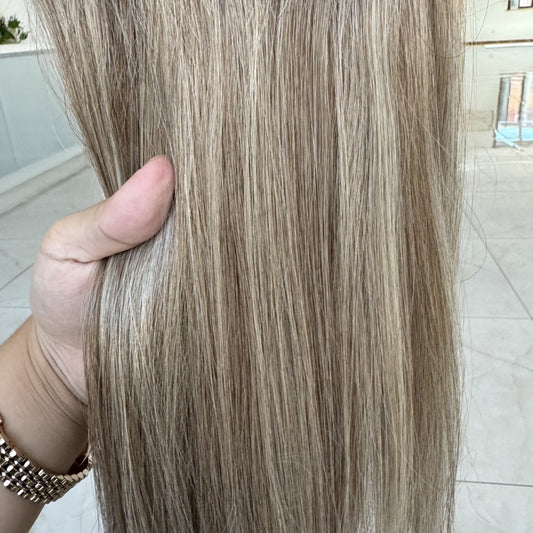 Mary Sandy Balayage Silicone Gripper Wig 100% Virgin European Remy Human Hair Silk Top Fully Handtied Medical Wigs
