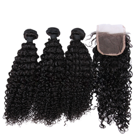 Indian Virgin Human Hair Deep Wave A Lace Closure With 3 Bundles Deal