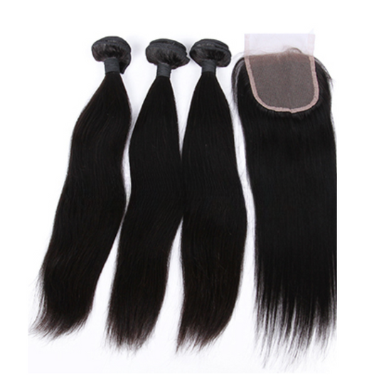 Indian Virgin Human Hair Straight A Lace Closure With 3 Bundles Deal