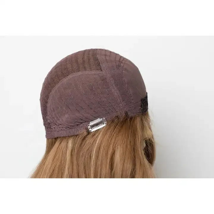 Experience the Leslie Blonde with Highlights wig, crafted from 8A grade, top-quality, cuticle-aligned 100% virgin Brazilian hair. This silk top, kosher wig features a pre-plucked hairline and an adjustable elastic band for a natural fit. With 150% density (and 180% available), it offers full, luxurious volume that enhances your look effortlessly.