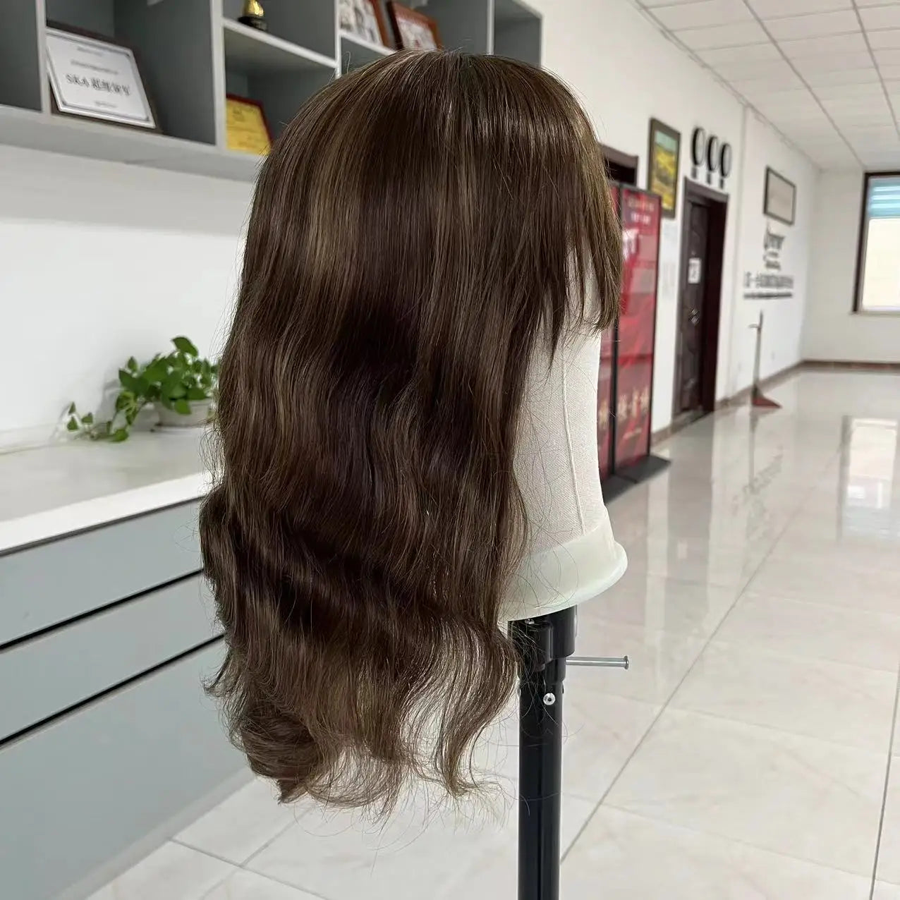 Becky Brown Balayage with Bangs Full Hand Tied with 5x5 Inch Silk 100% European Virgin Human Hair