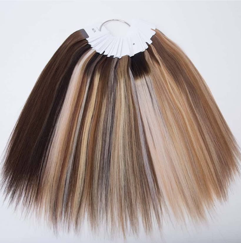 The Human Hair Color Ring offers 51 shades, including natural hues, highlights, and balayage styles, allowing for accurate selection and customization of wig, hair weave, and extension colors.