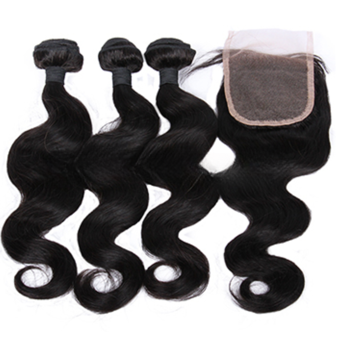 Indian Virgin Human Hair Body Wave A Lace Closure With 3 Bundles Deal