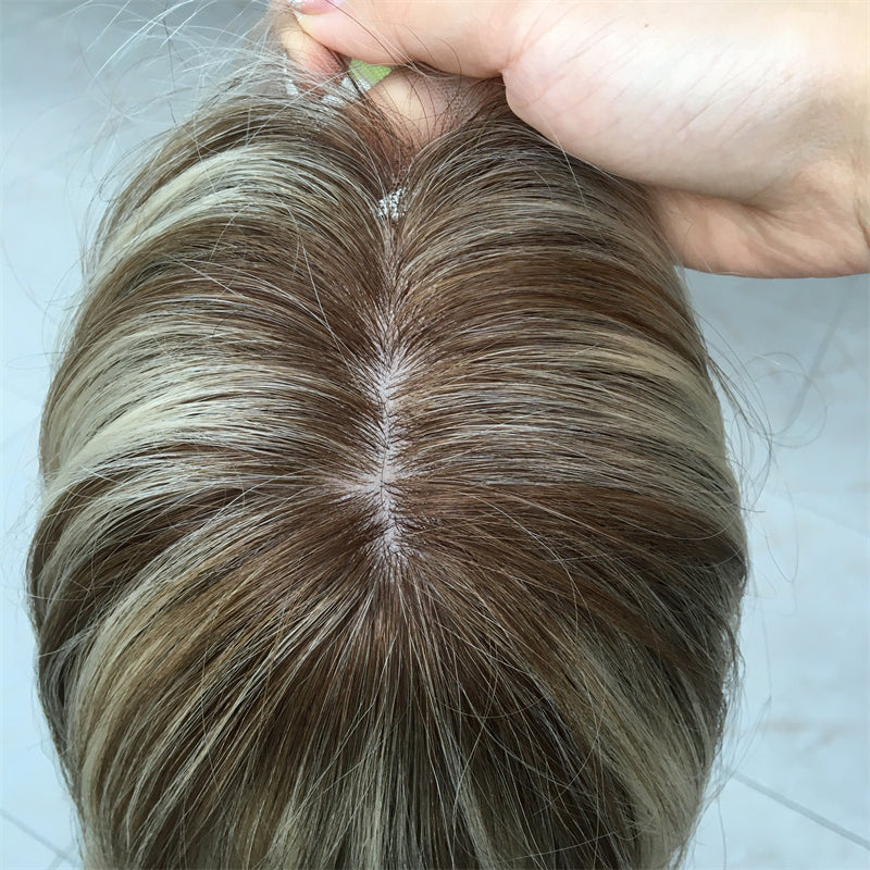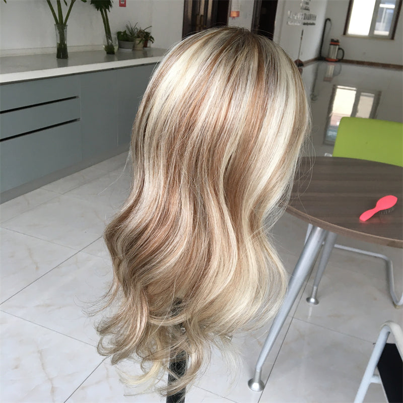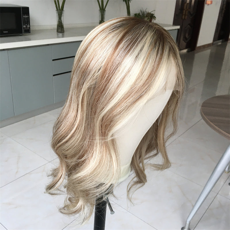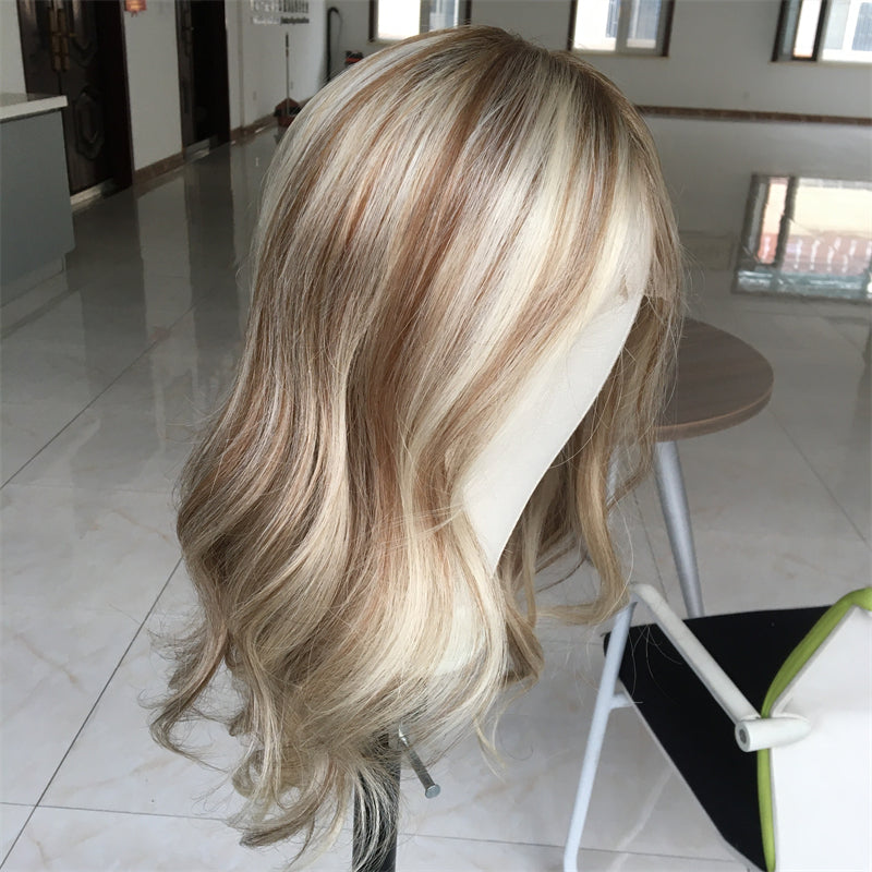 Medical Wig Customize Virgin European Human Hair Wigs Blonde Bayalage Color 16 Inch 130% Density Wig