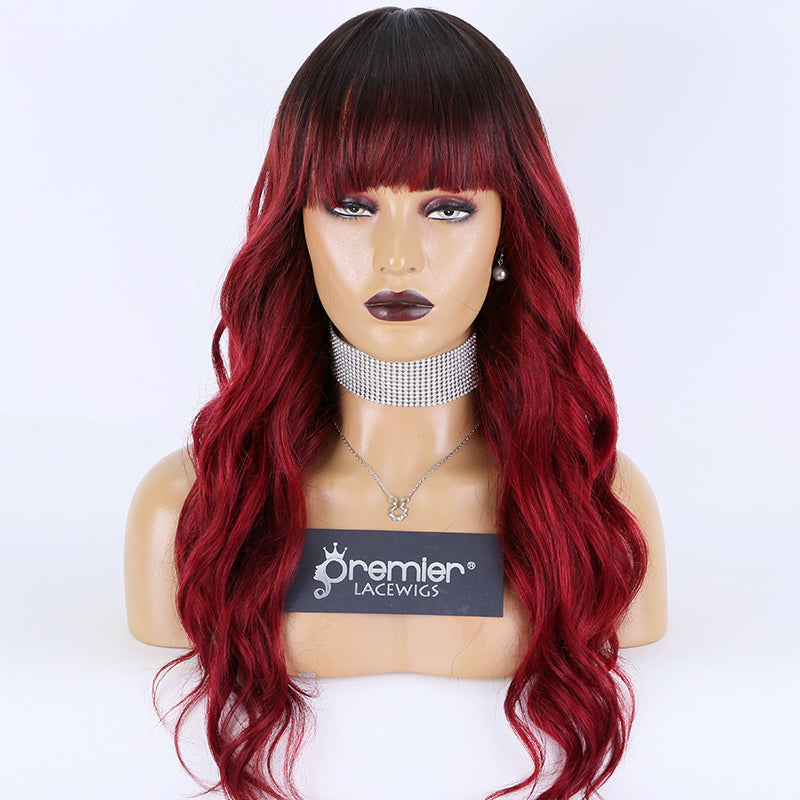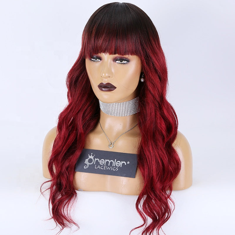New Arrivals human hair wigs affordable price silk base wigs wavy human hair silk top wigs with hair bang ombre burg colors