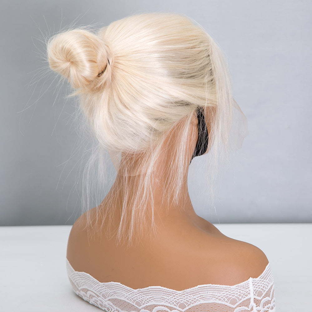 Ponytail new swiss hd lace front wig single knots white blonde color wig European human hair wigs