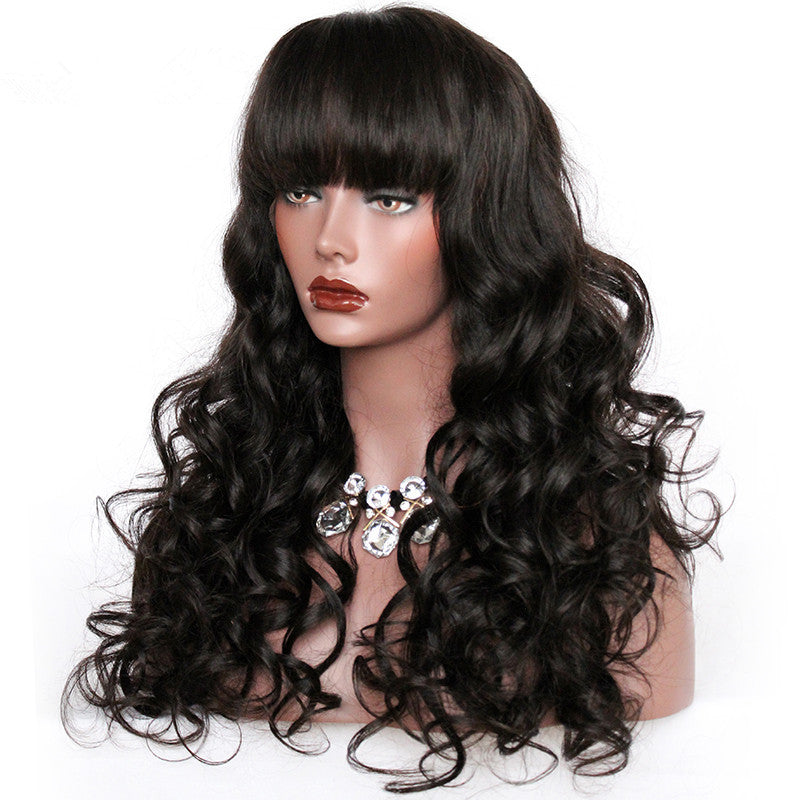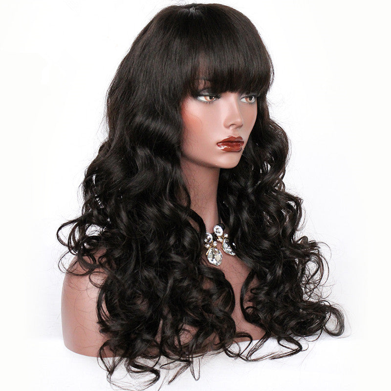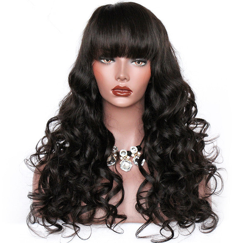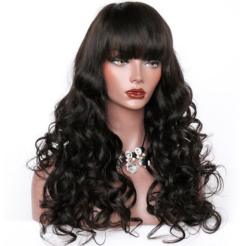 Premier Lace Wigs Premier Lace Wigs Wavy Indian Remy Human Hair 150% Density Glueless Full Lace Wigs With Full Bangs |