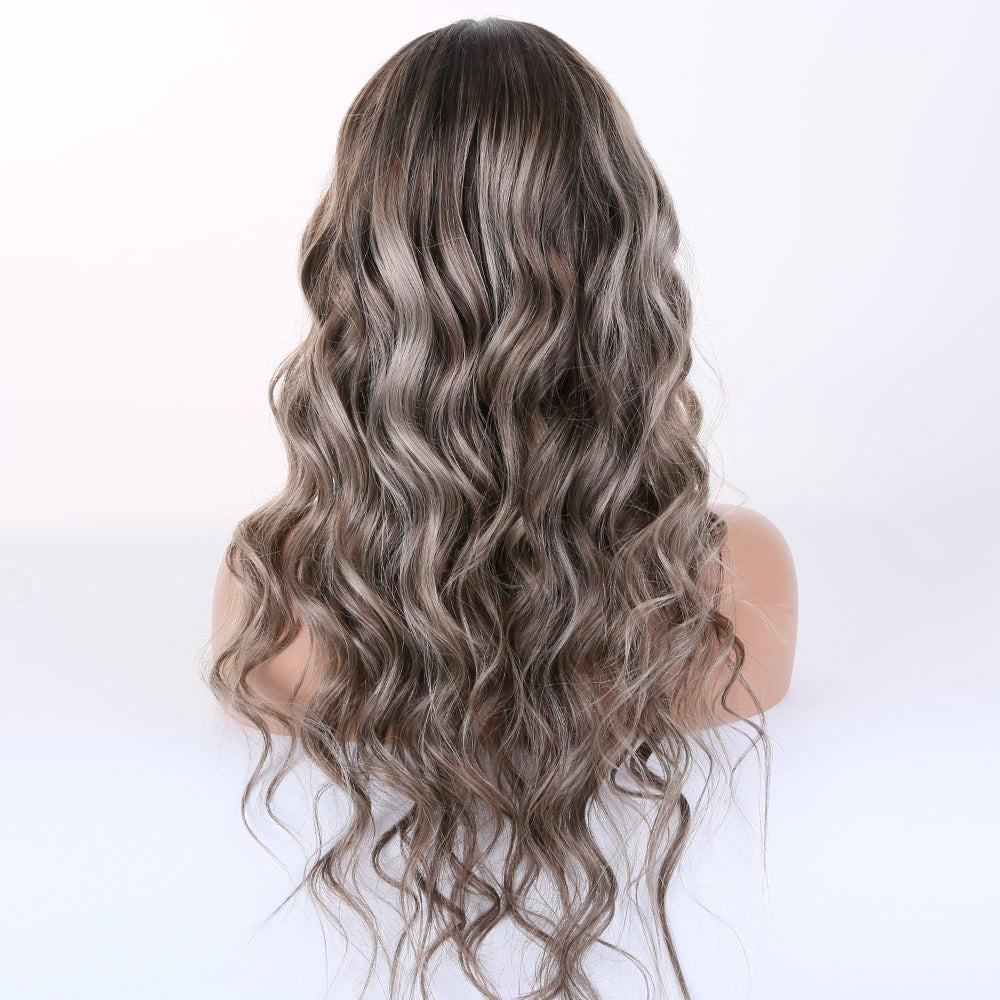 Premier Pre Plucked Wavy Ash Blonde Lace Front Wig With Dark Roots Ombre Ash Blonde Highlights Human Hair Full Lace Wig