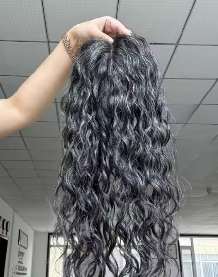 Sandy Curly Hair Topper Dark Salt and Pepper Grade 12A 100%Virgin European Remy Hair